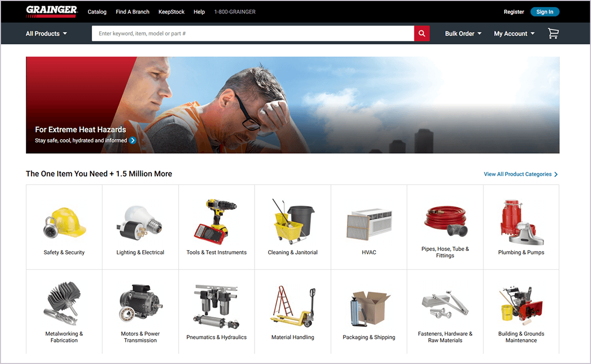 Grainger is a leader in the industry, and its website is optimized for B2B users who make large-scale purchases.