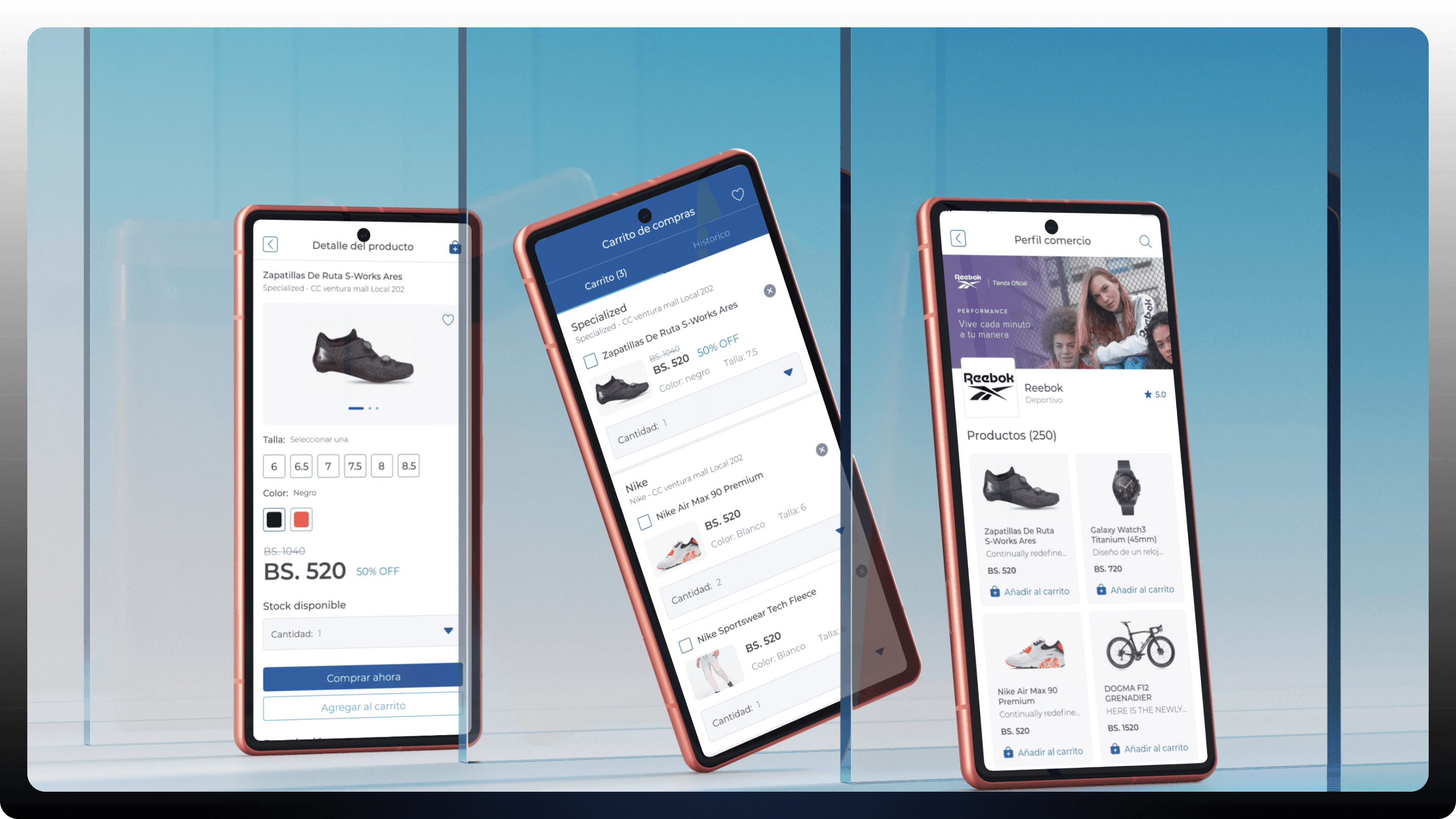Intuitive and unified interface: An interface was designed that allows users to easily navigate between stores and brands, offering a fluid and seamless shopping experience.